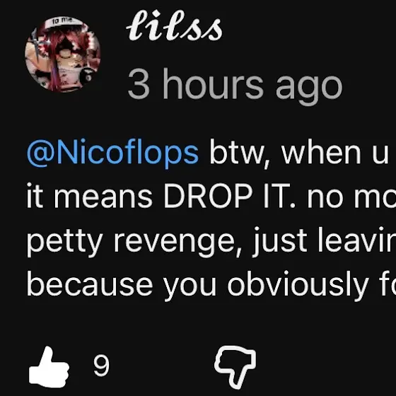 @Nicoflops has been harassing, gaslighting, spreading lies, leaking personal information, threatening, and using my friends for fame. im kinda lazy to explain everything bc hes not worth my time so heres some proof and what i sent to him after he said “we need to talk, i didnt leak your face!”😭 (i may or may not be wrong abt him leaking my acc in a gc, but doesnt matter bc he still publicly mentioned it)