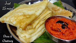 ఎలాంటి పప్పులు లేకుండా కేవలం 15 ని"ల్లో క్రిస్పీ,స్పాంజ్ దోసెలు & చట్నీ చేసారంటే - instant breakfast