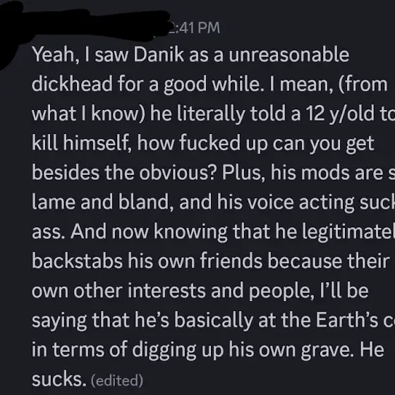 The people working on his mods are honestly more better and nicer than him. And yet he also treats his mod teams like shit