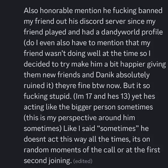 But even Danik treats his friends like shit, and if he doesn't to you, then he probably talks shit about you behind your back.
