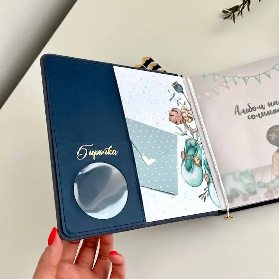 🌙 Альбом можно персонализировать нанесением памятной надписи на корешок, форзац или первый лист.