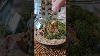 Adding a miniature fallen tree branch to our 4x4 Mosscape #terrarium #mossterrarium #landscape #moss