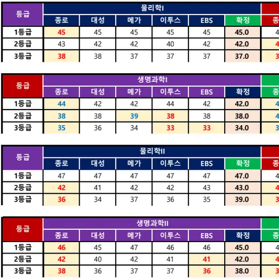 2026학년도 탐구 원점수 등급컷 확정판입니다.