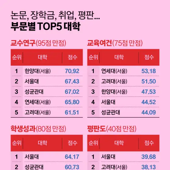 중앙대, 서강대, 고려대(세), 성균관대.....