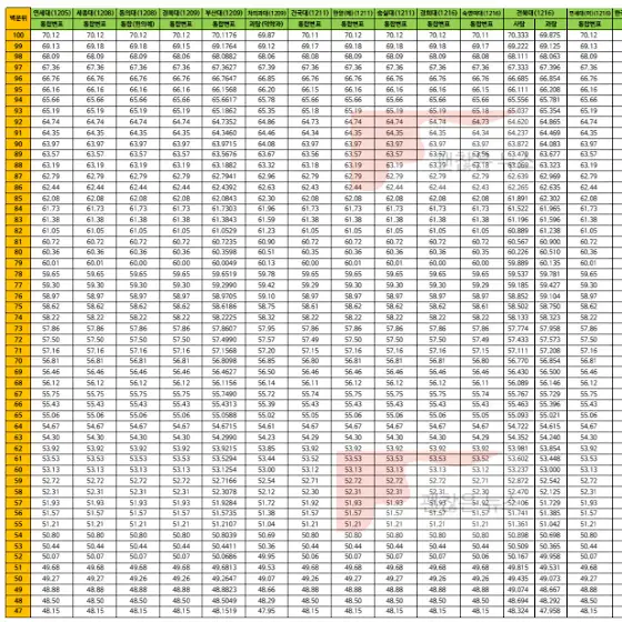 2025년 12월 19일 기준 대학별 변환표준점수표입니다. (출처 : 괜찮은 뉴스)