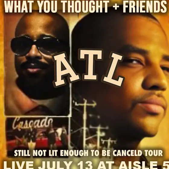 What You Thought is heading back on road. Still Not Lit Enough To Be Canceled Tour ! Tickets on Sale Now WhatYouThought.com DC - 6/13 Cambridge - 6/19 ATL - 7/13 & Chicago - 8/23 . Buy Your Tickets Now Before We're Too Lit.