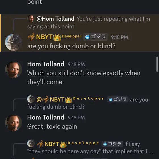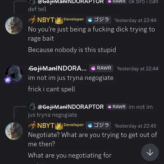 Found these in the server. He’s dodging questions and just straight up being toxic (according to his rules)
