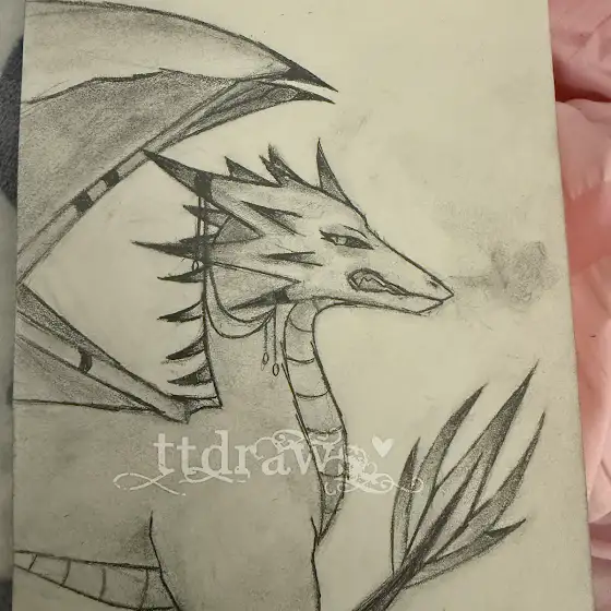 Art challenge with @RVSTY_BL3ACH !! Supposed to draw a dragon. It’s my first time so I hope you like itttt!! Haven’t touched up my trad art in a while so this was pretty fun 😁😁❤️