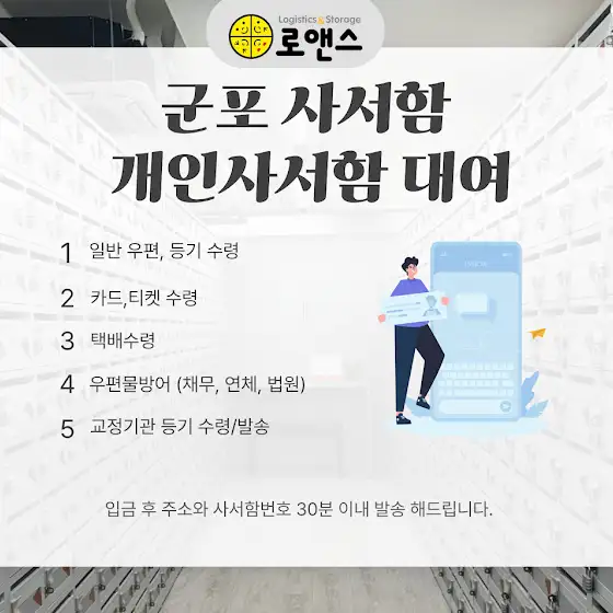개인 사서함(사설 사서함) 로앤스로 문의 바랍니다.