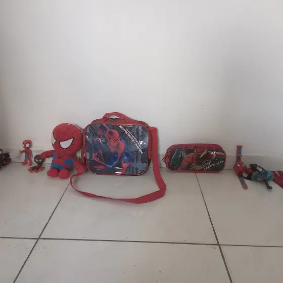 Olha mano só falta a chinela e a camisa e o casaco do homem-aranha 1 boneco 2 miles morales 3 spidey 4 miles morales mini 5 pelucia do homem-aranha 6 lancheira do homem-aranha 7 estojo do homem-aranha relógio 8 e lançado de teia