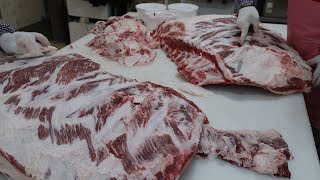 (주)행운푸드 /통돼지 부위별 해체하는 과정, 매일 평균 250두를 해체해서 부위별 납품하는 육가공제조공장 / Process of dismantling whole pig parts