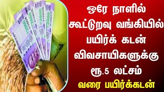 ஒரே நாளில் கூட்டுறவு வங்கியில் பயிர்க் கடன் ரூ.5லட்சம் வரை பயிர்க்கடன் tamilnadu tnnews subsidy loan