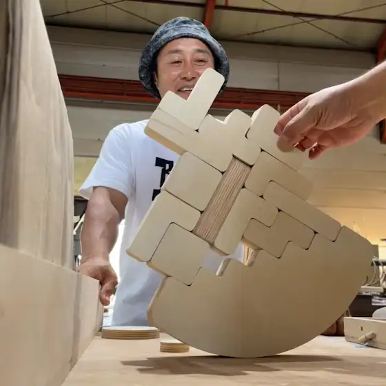 4. 2인 원판 나무 중심 잡으며 쌓기 장난감