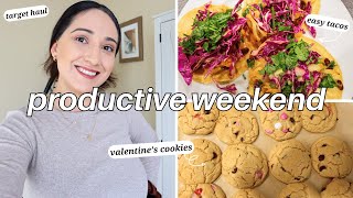 WEEKEND VLOG | Cooking Healthy Meals, Target Haul, Valentine's Day Cookies, Easy Workout, Productive