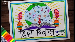 World Hindi Day poster drawing,10 January / How to draw Hindi Diwas poster/ विश्व हिंदी दिवस ड्राइंग