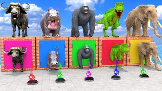 Long Slide Game With Elephant Gorilla Buffalo Hippopotamus Tiger - 3d Animal Game - Funny 3d Animals