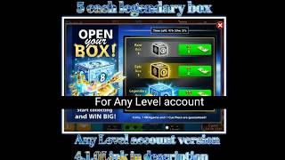 5 cash 1 legendary box || 4.1.0 version mod || working in all level account