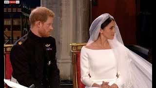 The cream coloured bags were adorned with the initials of Harry and Meghan, written in blue with mat