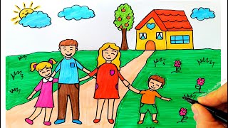 Aile Çizimi 👨👩👧👧 Anne Baba ve Çocuk Çizimi - Aile Resmi Nasıl Çizilir? - Family Drawing Easy