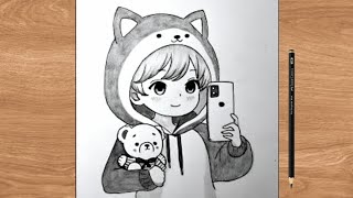 #Aesthetic and cute anime girl drawing ideas 3| aesthetic sketch ideas | cute girl drawing #animeart