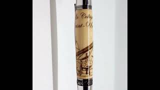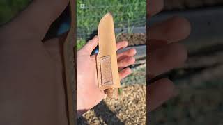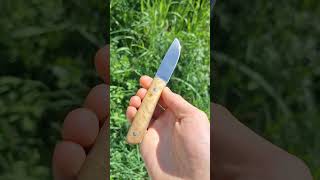 Handmade EDC knife in 1084 steel with oak burl handle and Swiss flag's colors liners, vegtan sheath.