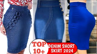 Top 10+ latest denim jeans short skirt styles for beautiful ladies 2024||designers denim short skirt