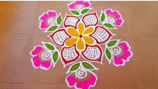 Rose Rangoli|Rose Rangoli Designs with Colours|Rose rangoli designs for competition|easy rose flower