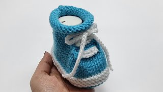 Making Seamless Two-Color 0-6 Month Baby Boot Booties with Needles / Baby Knitting / KNITTED BOOT...