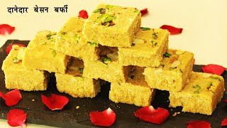 बेसन की बर्फी बिना चाशनी के झटपट एसे बनायें -फ्रिज के बाहर रखकर महीनों खायें । Besan ki burfi Recipe