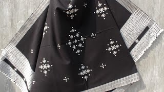Hand woven Kala cotton Bhujodi saree with chomukh & mirri work with tassels #attire6sense 8295575765