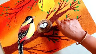 Scenery Poster Rangoli of Birds for Navratri,Unique Creative Beautiful Rangoli Designs /Bird Rangoli