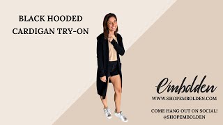 Zenana | Premium Knit | Flattering Black Zip-Up Hooded Cardigan - Adjustable Drawstring, Ribbed C...