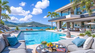 Tropical Seaside Morning with Cheerful Bossa Nova Jazz & Ocean Waves Sound in Summer for Upbeat Mood