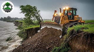 Starting A Perfect Project!! Filling Land Flooded Using Dozer Komat'Su D20P And Dump Truck Unloading
