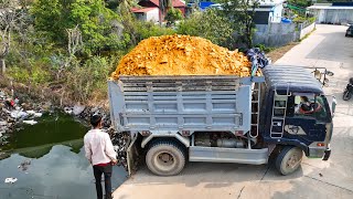 Start a new project!! Bulldozer KOMATSU D20P And Dump Truck 5Ton Pouring Soil To Delete Deep Pond