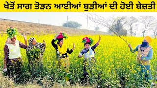 ਖੇਤ ਲੁੱਕ ਕੇ ਸਾਗ ਤੋੜਨ ਗਈਆਂ ਬੁੜੀਆਂ ਫੜ੍ਹੀਆਂ ਗਈਆਂ sag toran gyian burhian punjabi short video #sag #khet