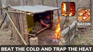 Solo Overnight Building a Bushcraft Camp With Furniture In the Woods and DIY Bacon and Egg McMuffins