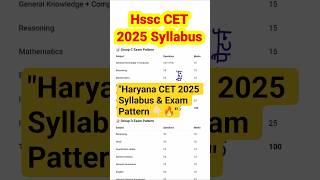 ✅ HSSC CET 2025 Full Syllabus 🔥 | Haryana CET New Pattern | Must Watch #haryanacet#Cet2025#shorts#yt