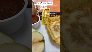 What’s for lunch guys? #Freshpear #TostadaBeansAndCheese #cholulahotsauce#SchoolLunch #CafeteriaFood