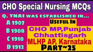 Part~25 || CHO Special Nursing MCQs | CHO MP | CHO Punjab | CHO Chhattisgarh| MLHP AP|MLHP Karnataka