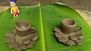 Primitive technique make Amazing miniature handmade tea set with clay|| miniature teaset with clay||