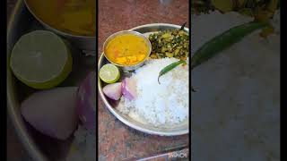 Sunday special lunch |rice, prawn malai curry, moong dal saag, chips, papad and salad |yummy lunch..