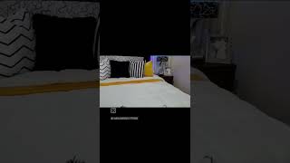 Black and white bedroom with bold accent color. Mixing up things! Be willing to take risks.