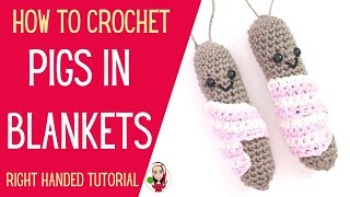 Crocheted Pigs in Blankets - Crocheted Christmas Decorations - Right Handed Video - UK Crochet Terms
