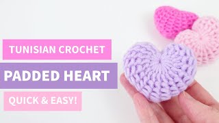 Easy Tunisian Crochet Padded Heart ♡ How to Crochet a Heart for Beginners ♡ Cute Mini Heart Tutorial