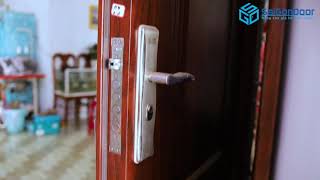 👉🏽 cửa thép chống cháy vân gỗ 1 cánh kiểu hoa văn gợn sóng, được dùng làm cửa phòng ngủ, cửa nhà tắm