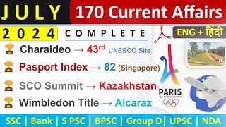 JULY Monthly Current Affairs 2024 | JULY Top 180 Current Affairs | Monthly Current Affairs JULY 2024
