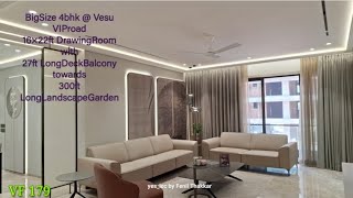 BigSize 4bhk @ Vesu VIProad 16×22ft DrawingRoom wth 27ft LongDeckBalcony : 300ft LongLandscapeGarden
