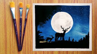 Deer Painting, Dear Painting Tutorial, How to draw deer, Deer in forest painting,simple deer drawing