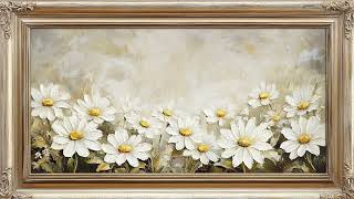 Gold Vintage Frame Wallpaper Art |Pretty White Watercolor Flowers Peonies, TV Display Screensaver HD